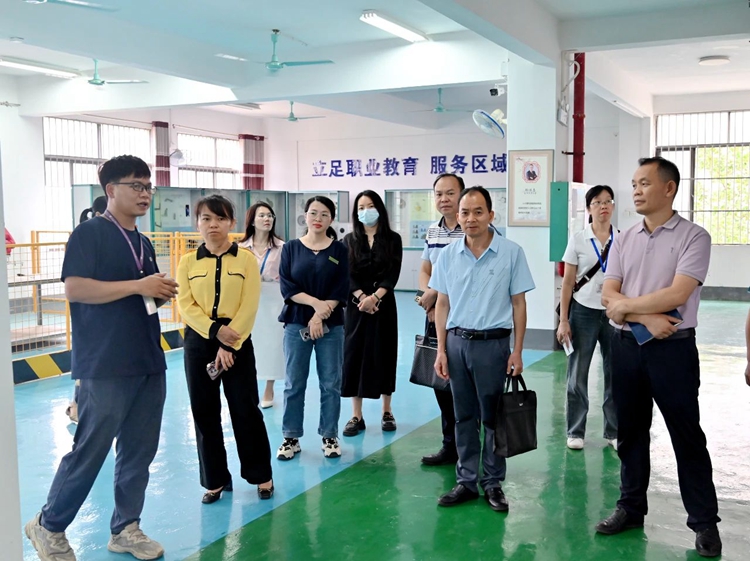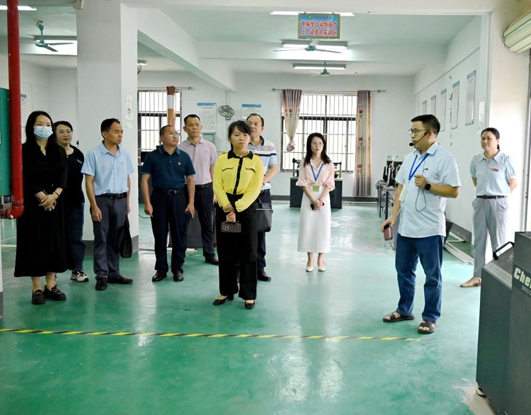 图为参观汽车与机电学院实验实训室