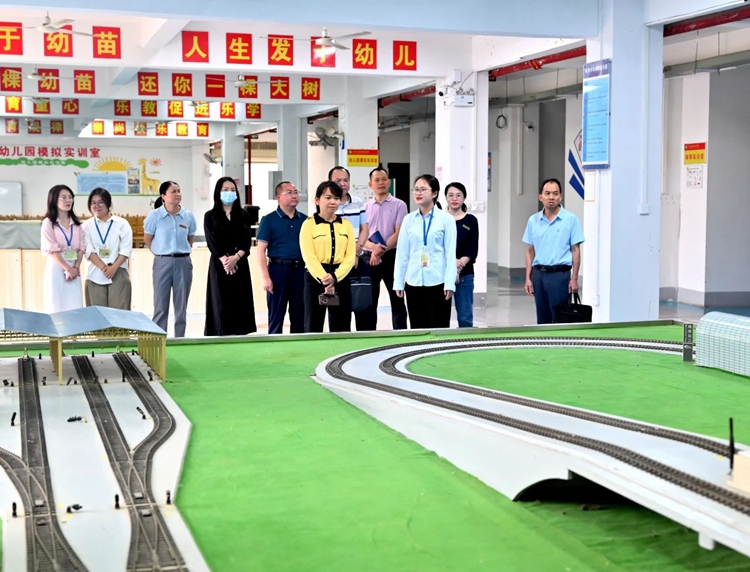 图为参观教育学院实验实训室