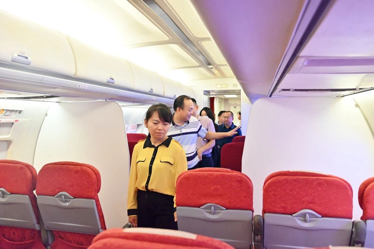 图为参观航空模拟综合实训室