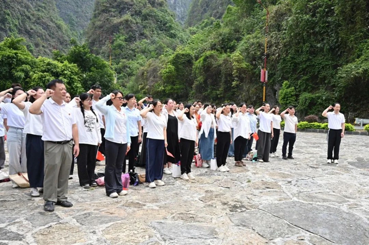 为深入学习贯彻习近平新时代中国特色社会主义思想和习近平总书记对高校党建工作的重要讲话精神,加强党员党性修养,推进廉洁自律和作风建设,促使广大党员干部自重、自省、自励、自警、自爱,做到慎微、慎独、慎思、慎权、慎行,6月7日,学校党委组织党员干部代表赴革命老区东兰县列宁岩、魁星楼、韦拔群故居、壮乡将军纪念馆、韦国清故居等地开展“学思践悟砺初心 笃行实干勇担当”主题党日活动。学校党委书记、政府督导专员蒙本曼,各党组织党务干部、部分教师党员代表共60余人参加活动。