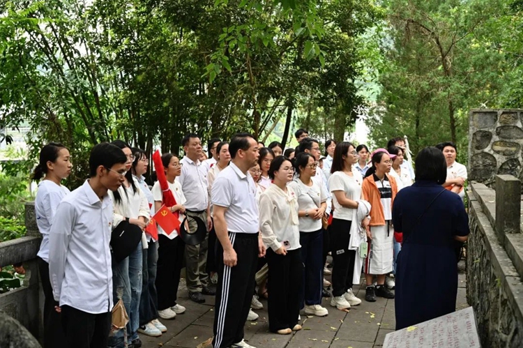 韦拔群为了革命理想不仅个人英勇献身,他的子女和兄弟姐妹等17人也都牺牲在革命的道路上。韦拔群同志全家人为党的革命事业光荣献身作出了巨大贡献的事迹催人泪下、感天动地,在场的党员们深情缅怀烈士英灵,表示要庚续红色血脉、坚守初心勇担使命。