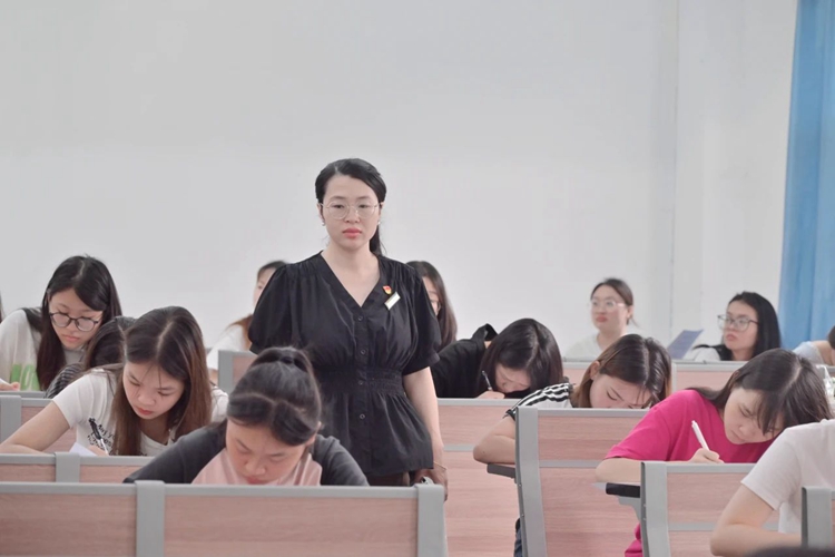 近日,beat3652025年春季学期考试工作有序推进。为维护考试公平公正,营造良好的考风考纪,学校党委副书记黄秋霞带队巡考小组深入各考场进行期末考试巡查。