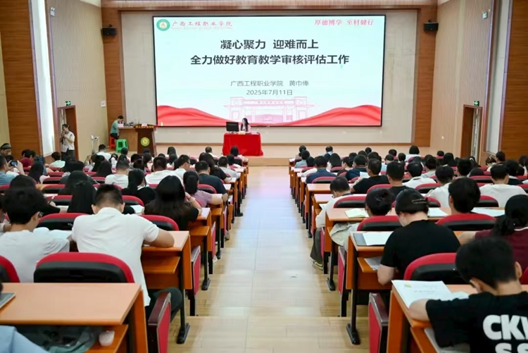 为进一步凝聚共识,明确下一阶段重点工作任务、压实责任,全力推进教育教学审核评估工作,7月11日,学校在图文信息大楼一楼学术报告厅召开2025年教育教学审核评估工作推进会。党委副书记、校长罗艳妮,党委副书记黄秋霞,纪委书记、副校长彭高彬,副校长黄德伟,副校长蒋茂丽及校长助理梁善雅等学校领导出席大会,全体教职工参加大会。
