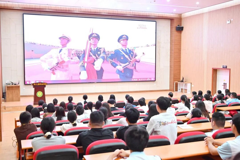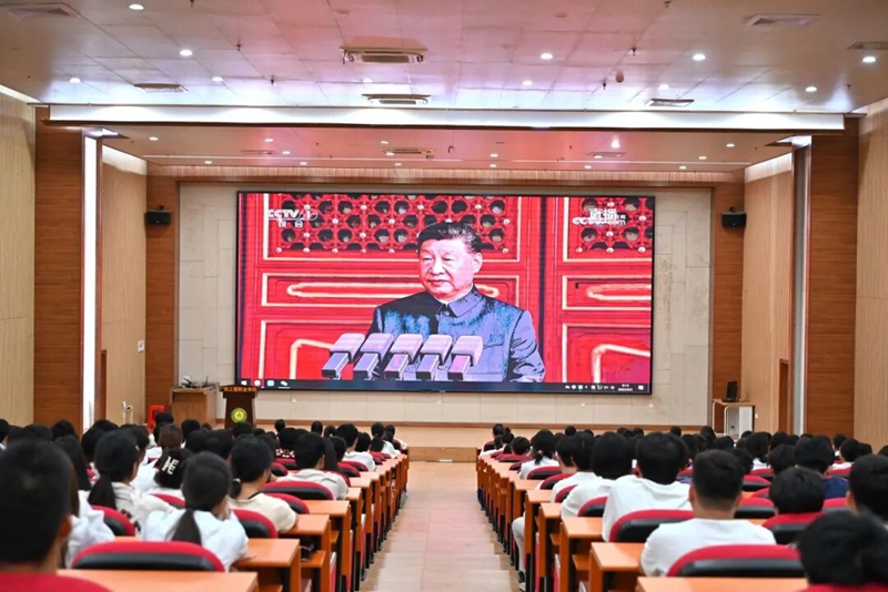 师生们认真聆听了习近平总书记在纪念中国人民抗日战争暨世界反法西斯战争胜利80周年大会上的重要讲话,并全程全神贯注地观看了阅兵仪式。习近平总书记的重要讲话激励着每一位师生,威武之师整齐划一的步伐、铿锵有力的口号,大国重器彰显的前沿科技、先进装备震撼着师生们的心灵,大家接受着灵魂的洗礼,不时爆发出热烈掌声。