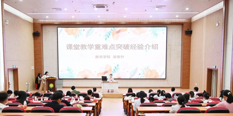 图为教育学院梁春叶老师作课堂教学重难点突破方法分享