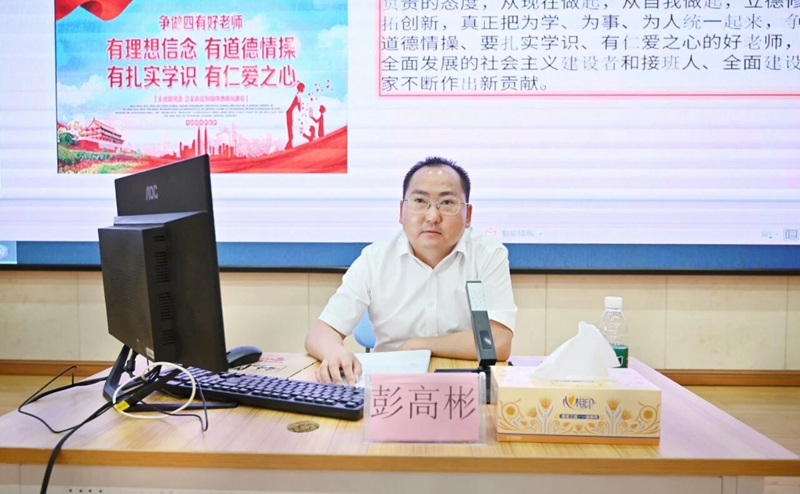 图为纪委书记、副校长彭高彬作《师德师风第一课——清风正气育新人・廉洁从教守初心》专题培训
