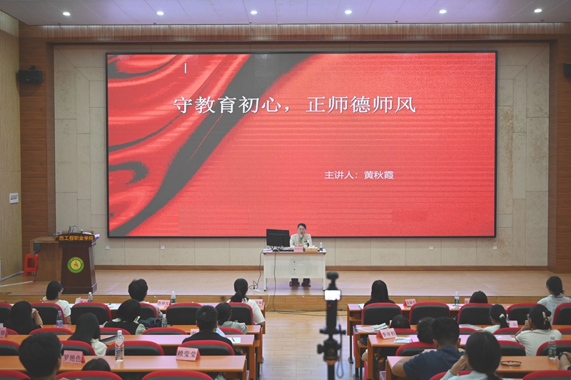 党委副书记黄秋霞以《师德师风第一课——守教育初心,正师德师风》为题,结合学生工作实际,详细解读 “四有好老师”“四个引路人”“四个相统一” 的深刻内涵,通过 “身边的榜样 —最美教师”与违反教师职业行为准则的典型案例对比,要求教师全面贯彻党的教育方针,以润己泽人的态度践行为党育人使命。