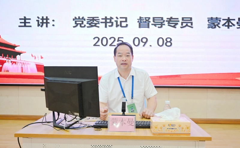 图为党委书记、督导专员蒙本曼作《师德师风第一课——深刻认识意识形态工作极端重要性 全力打造“大思政课”育人格局》专题培训