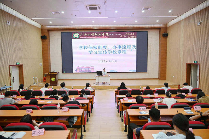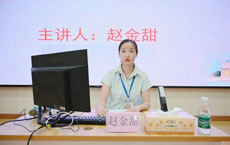图为校长办公室科长赵金甜作学习学校章程、保密制度等专题培训