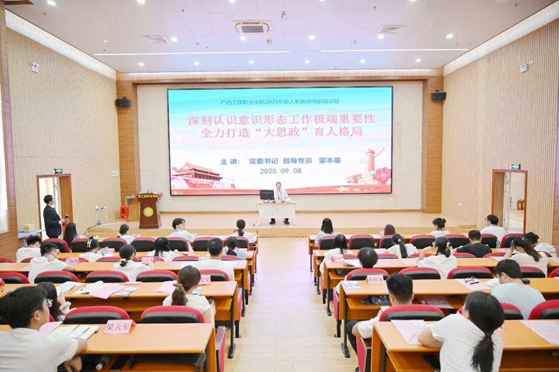 党委书记、督导专员蒙本曼以《师德师风第一课——深刻认识意识形态工作极端重要性 全力打造“大思政课”育人格局》为题,开启新教师岗前培训第一课。他从 “意识形态工作是党的一项极端重要的工作” 和 “以强有力的思想政治工作打造‘大思政’育人格局” 两方面展开,结合网络热点事件与典型案例,深入浅出地阐释意识形态工作的重要性,强调要牢固树立意识形态主阵地意识,提高研判能力,守好教书育人阵地。他紧扣习近平总书记关于意识形态工作的重要论述,系统解读意识形态的科学内涵、本质特征,以及其对推动国家高质量发展、培育时代新人的重要作用。蒙本曼书记强调,学校作为意识形态工作重要阵地,必须坚持党的全面领导,将思想政治工作贯穿教育教学全过程,构建“全员、全程、全方位”大思政育人格局;全体新教师要切实提高意识形态辨别能力,自觉抵制错误思潮,始终在思想上政治上行动上同以习近平同志为核心的党中央保持高度一致,确保学校教育事业沿着正确政治方向前进。