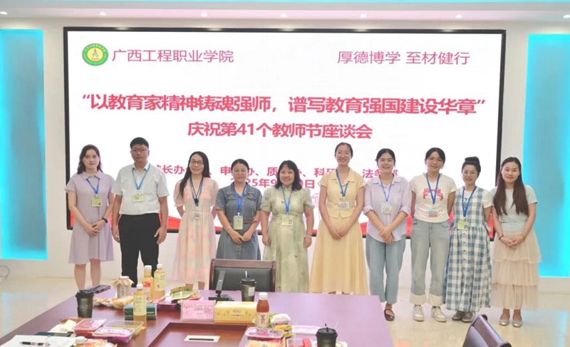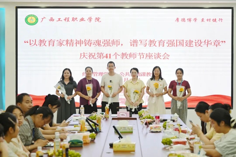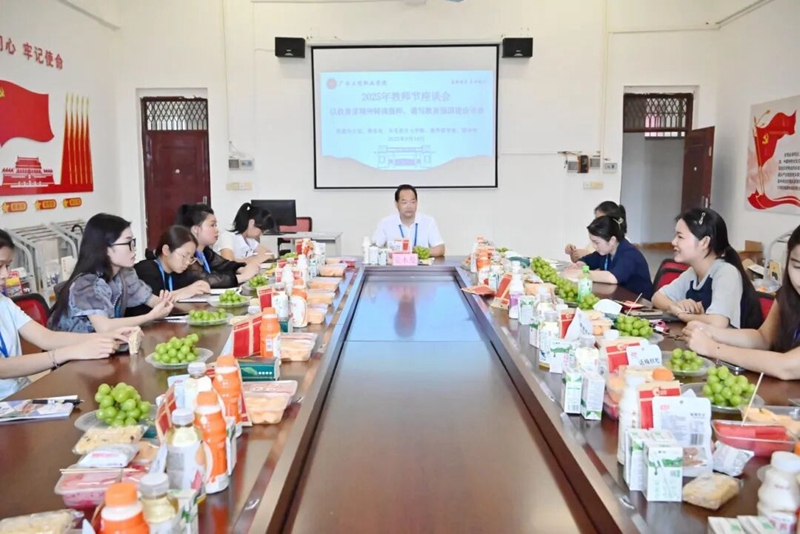 学校党委书记、政府督导专员蒙本曼,党委副书记、校长罗艳妮,党委副书记黄秋霞,纪委书记、副校长彭高彬,副校长黄德伟、蒋茂丽,校长助理李明泽、梁善雅等校领导分别组织相关部门召开主题为“以教育家精神铸魂强师,谱写教育强国建设华章”的教师节座谈会。