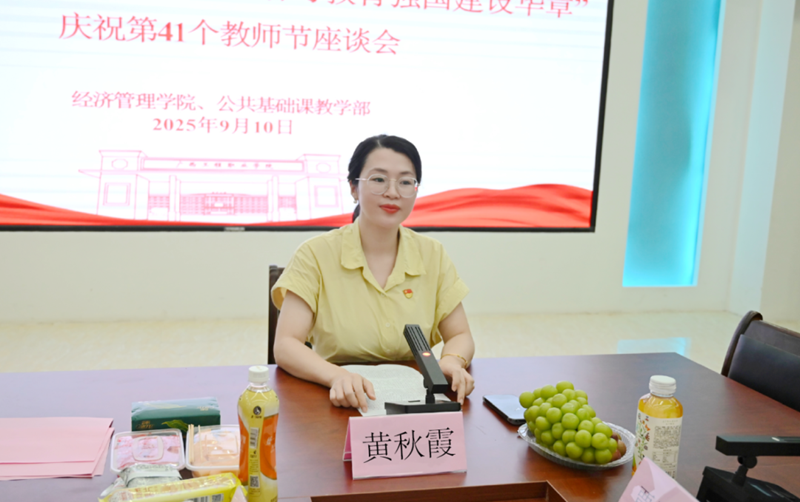 图为党委副书记黄秋霞组织经济管理学院等部门召开庆祝第41个教师节座谈会