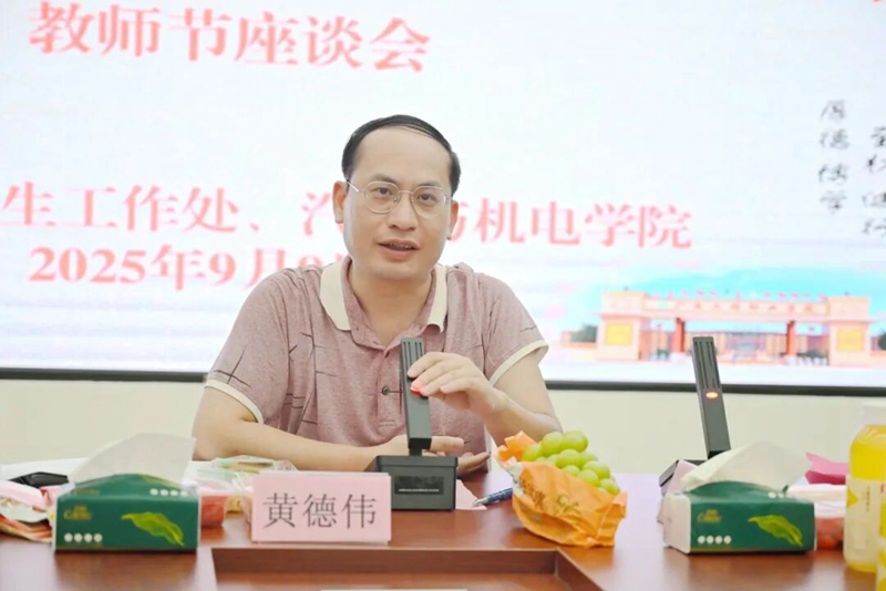 图为副校长黄德伟组织汽车与机电学院等部门召开庆祝第41个教师节座谈会