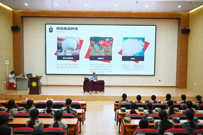 禁毒基地黄雪娇警官深入剖析新型毒品伪装形式及危害,提出"不接陌生人物品、不近高危场所、不交涉毒朋友"的"三不"防护策略,增强师生识毒防毒能力。