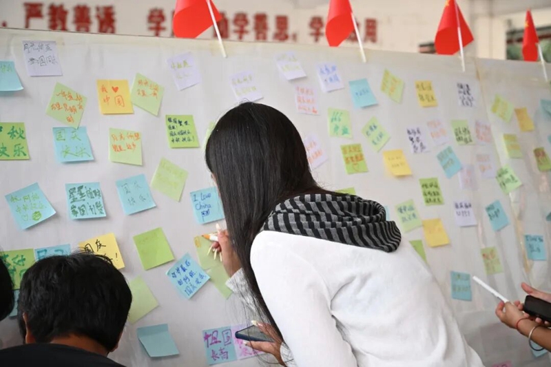 双节同庆,情满校园。为弘扬中华优秀传统文化,厚植师生家国情怀,在中秋、国庆双节来临之际,学校在校园广场开展便签寄语活动,吸引众多学子驻足参与。