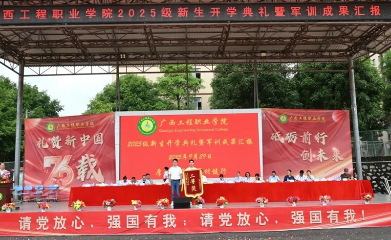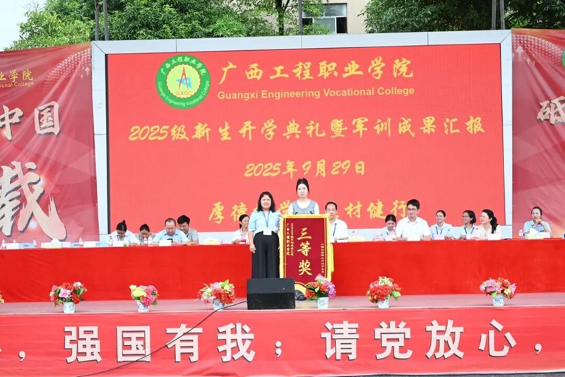 副校长蒋茂丽宣读了《关于2025级新生军训先进集体和先进个人的表彰决定》,岳思欣等548名同学被评为军训标兵,李小村等15名教师被评为优秀带班班主任,王华铭等14名教官被评为优秀教官,刘新丽等18名教师荣获军训工作积极贡献奖,梁林浩等48名教官荣获军训工作积极贡献奖,18-304等61间宿舍被评为文明宿舍,汽车与机电学院等3个学院方阵荣获军训会操表演先进集体。这份荣誉,不仅是对获奖者努力的认可与鼓舞,更将化作一股动力,为全体新生注入前行的勇气,既是温暖的激励,也是有力的鞭策。