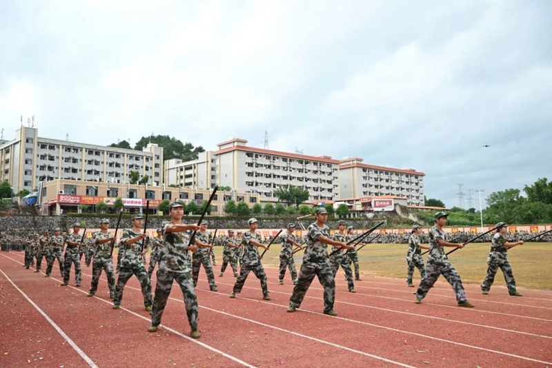伴着嘹亮激昂的口号声,各营队伍迈着整齐有力的步伐有序入场。他们脊背挺直、身姿挺拔,眼神坚定而锐利,每一支队伍都像即将奔赴使命的钢铁劲旅,尽显昂扬气势。
