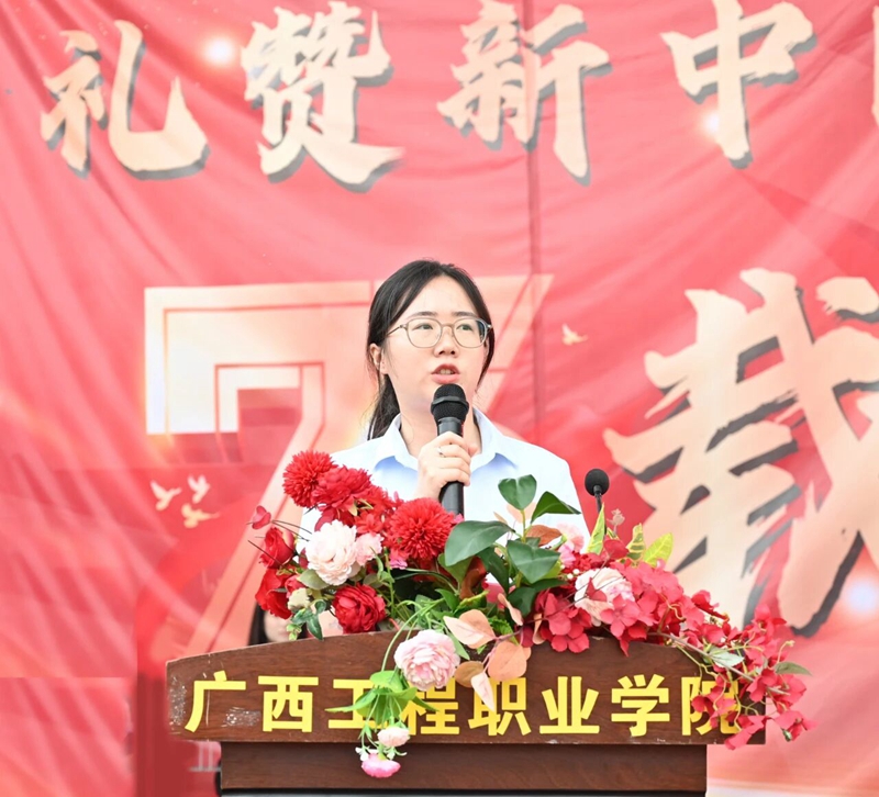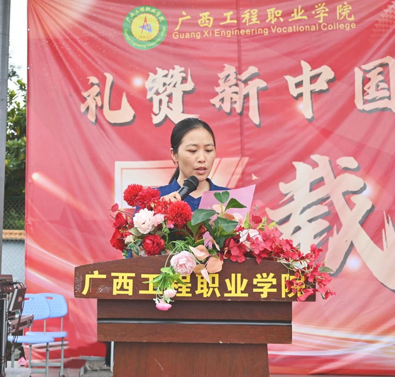 教师代表黄美慧发言。她表示,学校将为新生搭建专业技能学习与工匠精神培养的优质平台,并从三方面为新生送上成长建议。一是新生要以“归零”心态锚定目标,科学规划职业生涯;二是倡导新生在学习中注重“学思结合、手脑并用”,切实将理论知识转化为实践能力;三是鼓励新生兼顾本领提升与品格涵养,实现全面发展,以昂扬姿态迎接大学生活的新挑战。