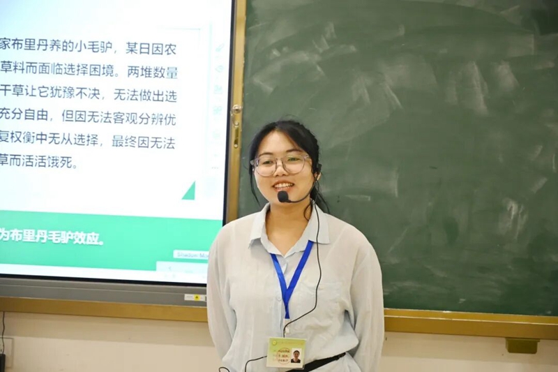 韦淑敏老师围绕 “创造有意义的人生” 展开教学,重点讲解 “得失”“苦乐”“顺逆”“生死”“荣辱” 五对人生矛盾的应对之道。教学中,她聚焦学生能力培养,引导学生从多角度看待问题、形成全面认知,进而提升分析解决问题的能力与批判性思维;同时指导学生对社会现象进行理性分析、提出独立见解,帮助学生在科学高尚的人生观指引下,正确对待人生矛盾、自觉抵制错误观念,努力提升人生境界,成就出彩人生。