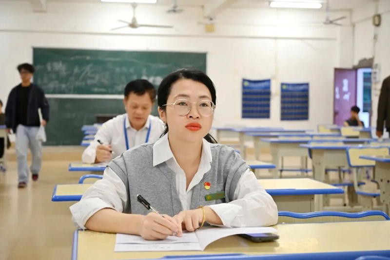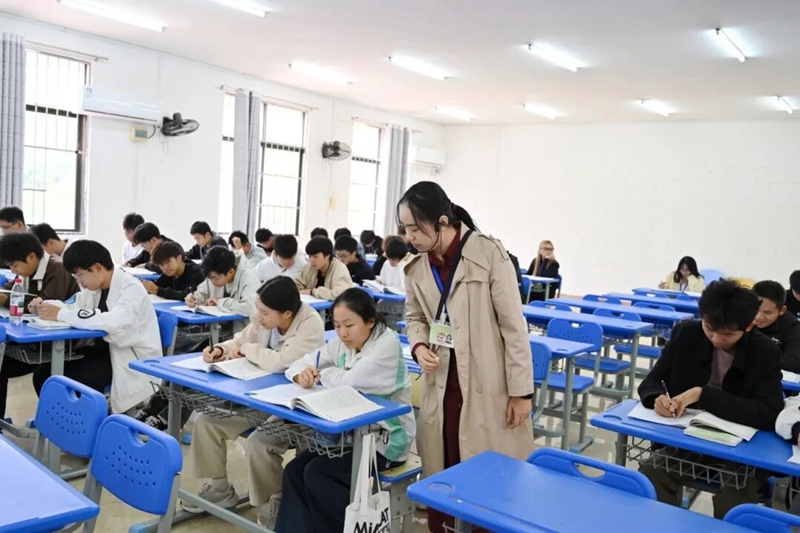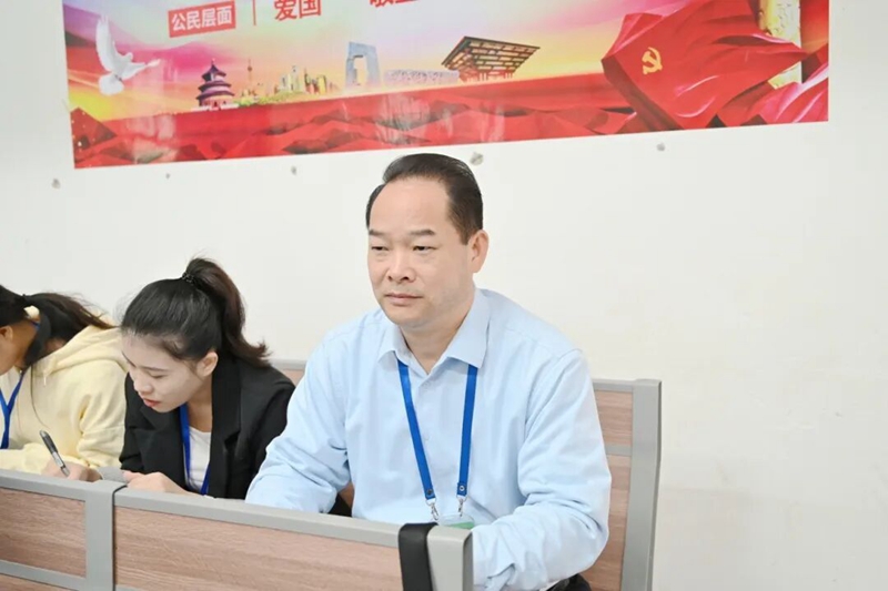 学校党委书记、政府督导专员蒙本曼,党委副书记黄秋霞走进教学一线,随机选取多门不同学科的课堂,以 “学生” 视角全程专注聆听教师公开课。过程中,手持笔记本细致记录,重点关注课堂导入设计、教学重难点拆解逻辑、师生互动的频次与质量、多媒体教学工具的运用效果,同时观察学生的课堂注意力集中情况与知识回应状态。