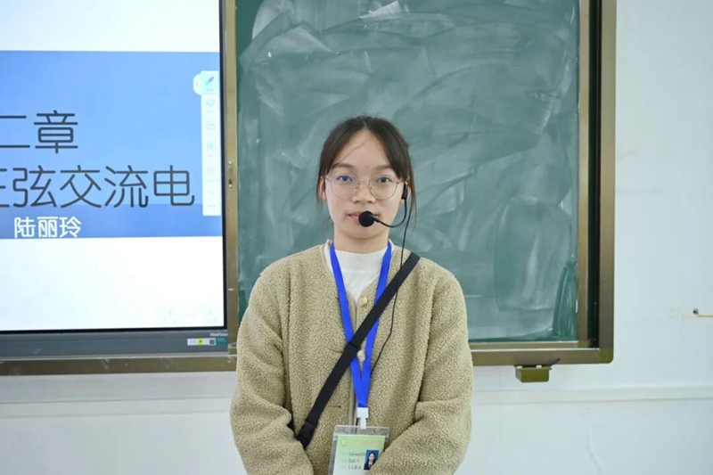 陆丽玲老师围绕 “初步认识正弦交流电” 展开教学,重点讲解其定义及三要素等核心内容。教学中,她用通俗语言解读专业知识点,帮助学生轻松理解重难点;同时引导学生运用正弦交流电的参数进行简单计算,并学会识别其波形图,助力学生扎实掌握电工电子入门技能。