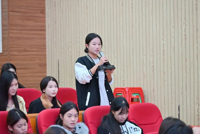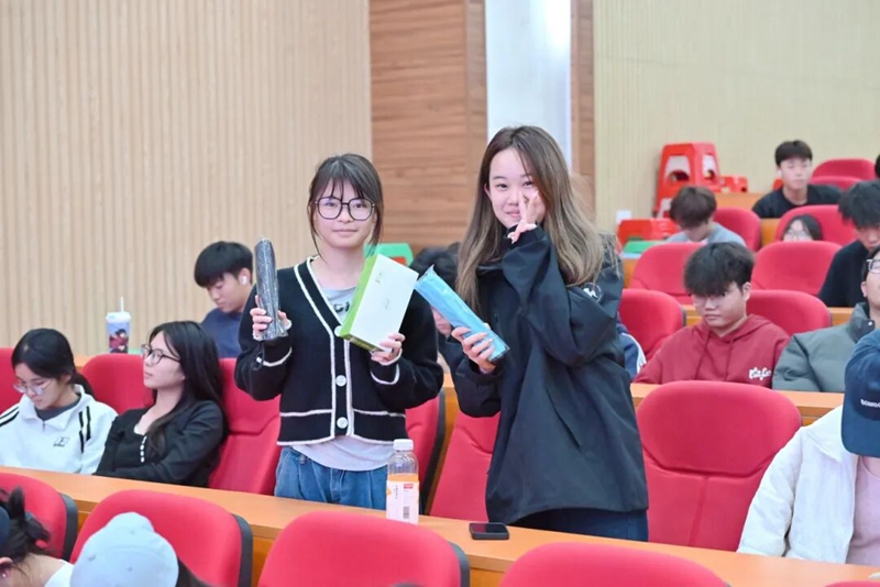 同学们积极参与到讲座的互动之中,回答有关的问题。