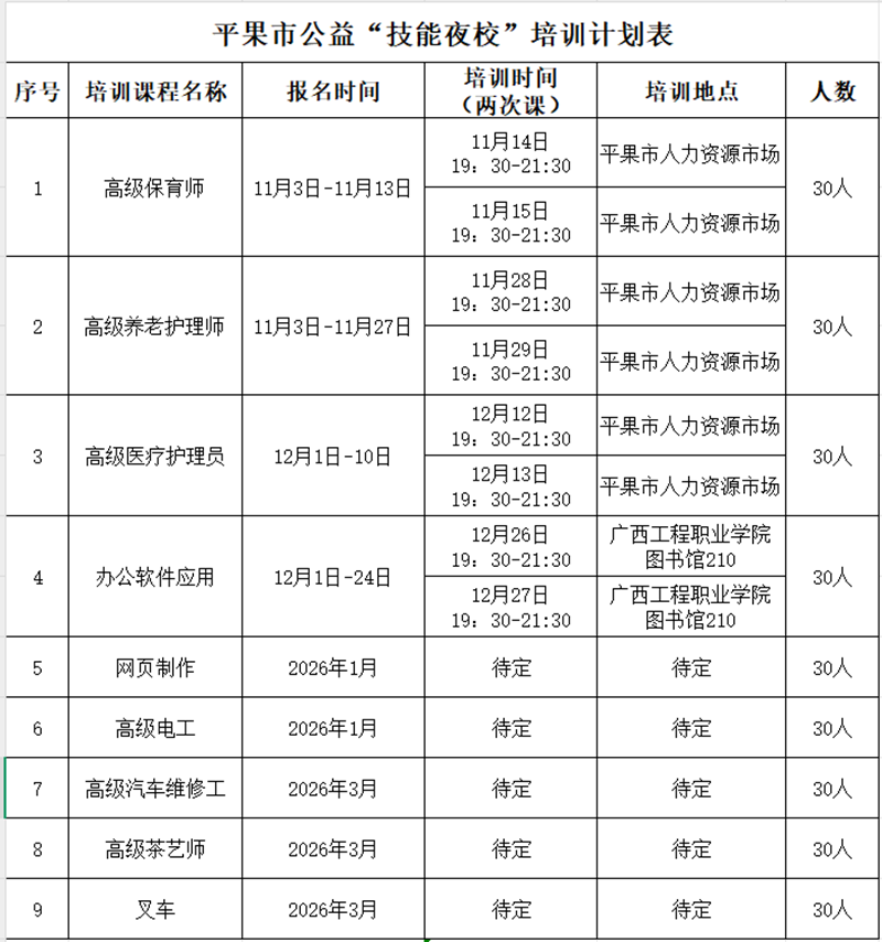 学习的目的在于运用。学员们要把在夜校学到的知识和技能,与自身的岗位工作结合起来,与未来的职业规划联系起来。通过学习与实践的积累,不断提升自身综合素质和业务技能水平。鼓励有意向进一步提升技能的学员参加专项技能培训,通过专业技能等级认定,获取国家职业技能等级证书。市人社局也将积极推动“技能培训 + 就业服务”的深度融合,努力为大家拓宽就业渠道。平果市人力资源市场是今年重点打造的公共就业服务平台,为广大求职者提供岗位推荐、就业指导、培训服务等就业服务,希望学员们多了解、多宣传,让更多平果的兄弟姐妹们实现就业。同时,期待大家在培训期间把所学转化为所用,在平凡的岗位上创造不平凡的业绩。