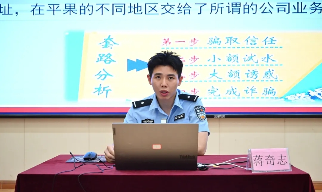 会上,蒋奇志警官结合本地真实案件,剖析四大高发诈骗类型: