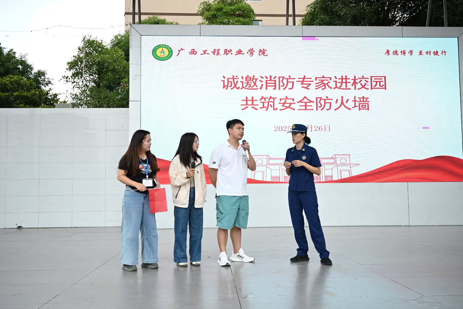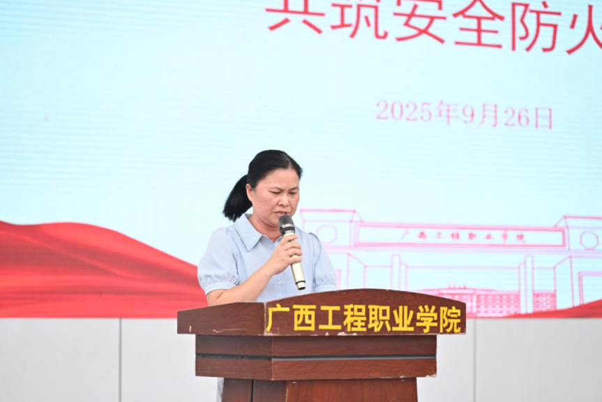 活动最后,学校领导梁善雅助理进行总结讲话,对平果市消防救援大队的鼎力支持表示衷心感谢,并强调消防安全是校园安全的基石,要求全体师生以此次活动为契机,将所学知识转化为日常行为习惯,共同维护平安和谐的校园环境。