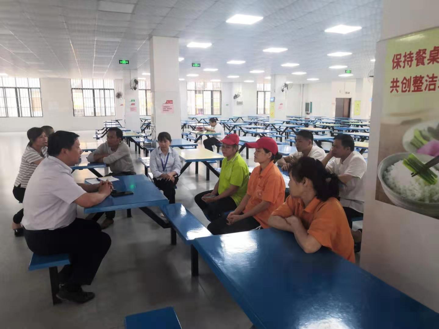 2021年5月24日星期一下午16点。后勤管理中心副处长刘兆兵,膳食科黄桂芬老师、卜素珍老师,在新食堂一楼组织所有食堂工作人员召开了合理控制粮食浪费问题的相关工作会议。会议主要就食堂安全卫生问题和如何合理控制饭菜分量的问题进行了讨论,会议指出一定要在保证学生吃好吃饱的前提下,合理的控制饭菜的分量,比如对于饭量比较大的男同学,可以适量多打一些饭菜,饭量比较小的女同学,可以合理控制一下饭菜量,这样尽可能的去减少粮食浪费。