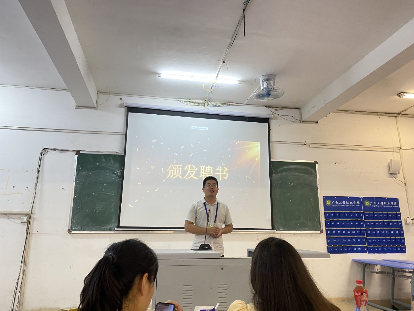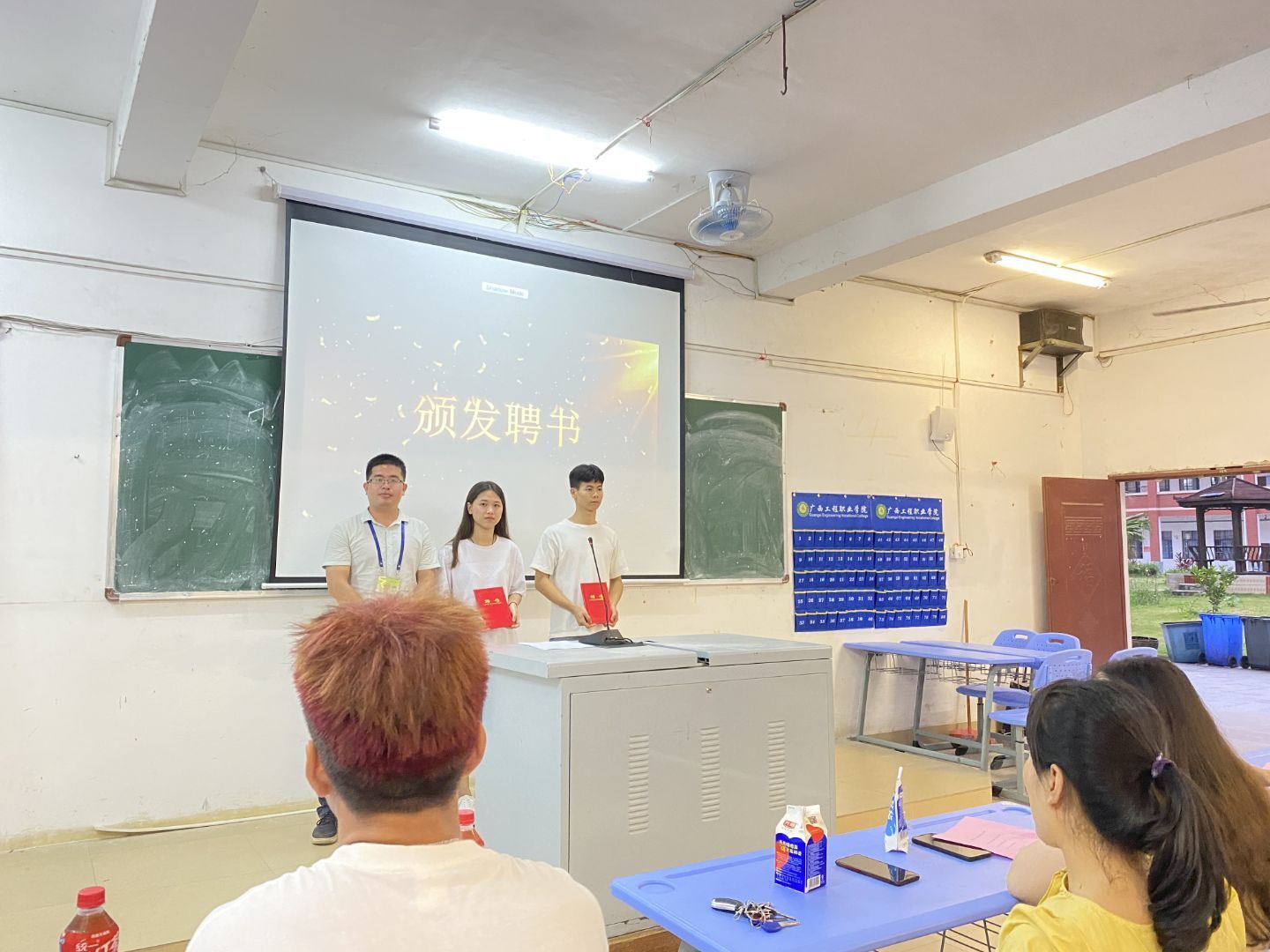 后勤管理中心陈锋老师为第三届后管会会长和副会长颁发了聘书