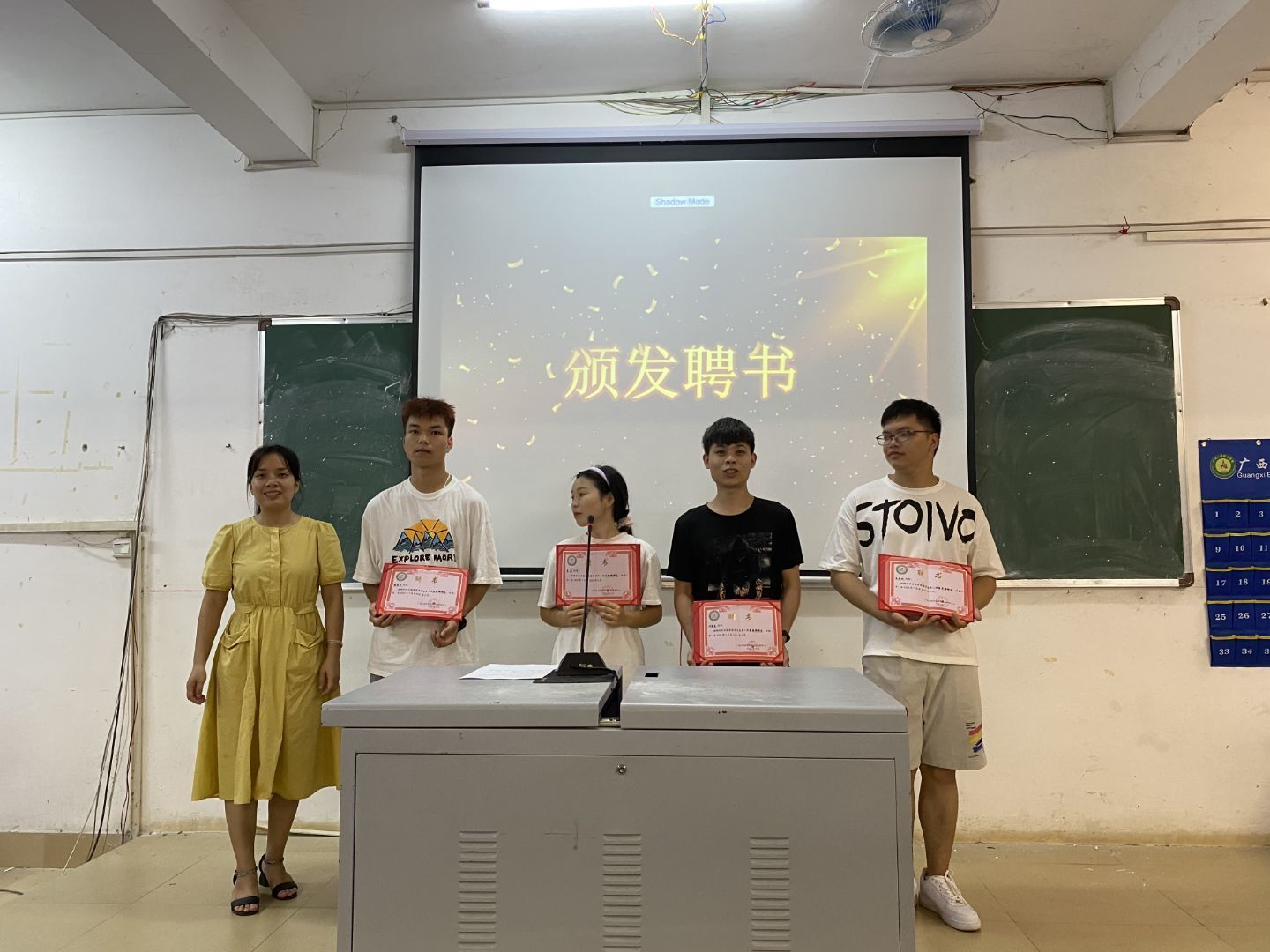 后勤管理中心黄桂芬老师为第三届后管会优秀干部颁发了聘书