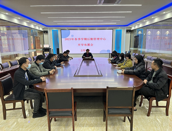 2023年2月9日下午,后勤管理中心全体成员在图书馆展览馆会议进行了2023年春季学期开学工作布置会议。会上,后勤管理中心刘兆兵主任对后勤科员、食堂管理人员的工作内容进行了分工并作出具体要求。