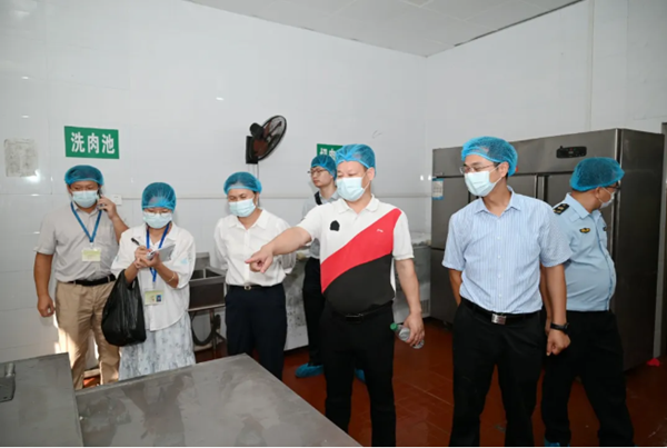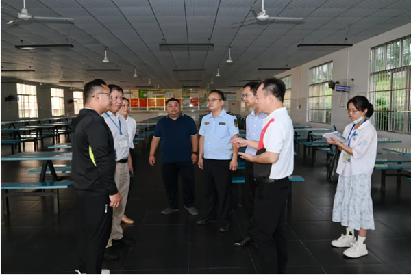 2024年9月19日上午,平果市委常委、市人民政府副市长沈燕明一行到beat365督导检查食品安全工作,市教育局总督学黄如彪、市场监督管理副局长梁家松、大学园区党工委专职副书记农浩、马头镇人民政府副镇长黄承炜,beat365校长助理梁善雅、后勤管理中心主任刘兆兵等陪同检查。