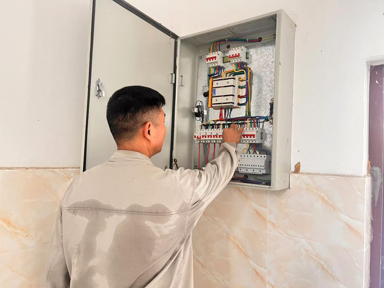 图为电工师傅检查电箱