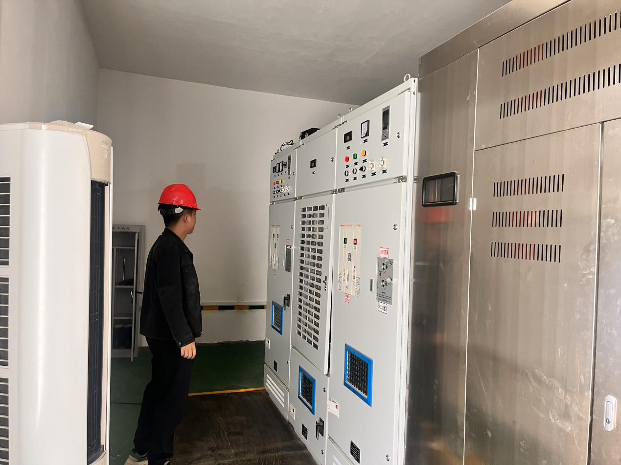 图为后勤工作人员检查变压器