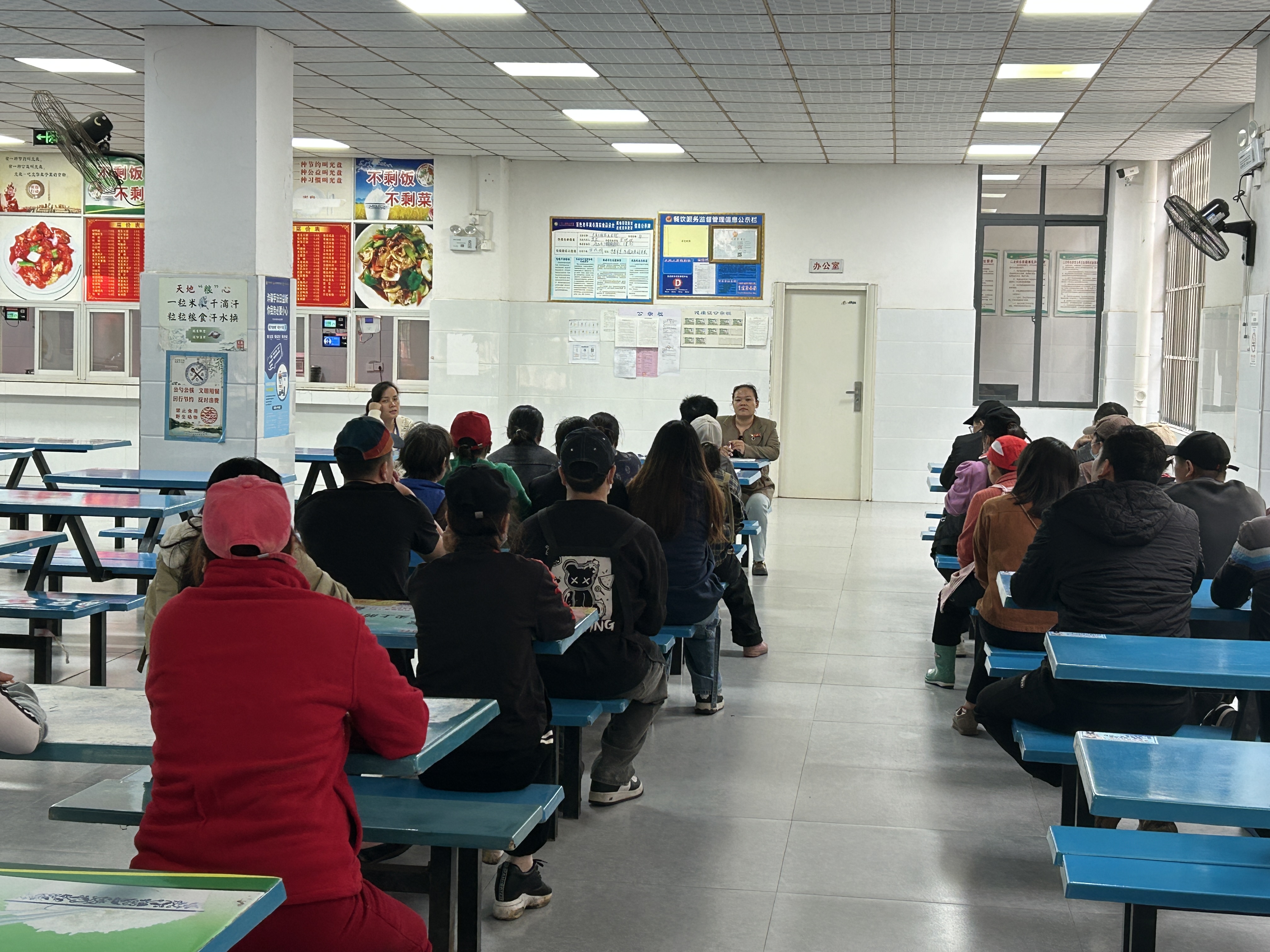 会上,梁欣欣副主任首先强调,校园食品安全直接关系全体师生的身体健康与校园稳定,必须从源头严格把控。各餐饮商铺需建立食材采购“溯源机制”,各商铺需建立台账,记录采购、验收等信息,确保可追溯;同时,食材储存需按“生熟分离、分类存放”原则管理,定期检查冷藏冷冻设备运行状态,避免因储存不当引发食品安全问题。要求各商铺每日清洁操作间、就餐区等区域,操作人员持健康证上岗并遵守卫生规范。