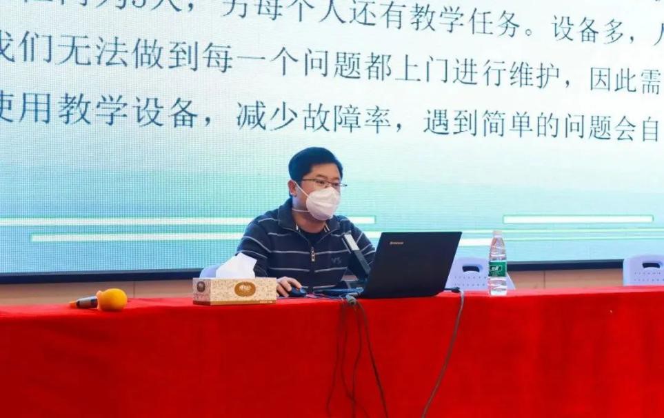 网络与电教中心副主任农德龙作多媒体教学设备使用专题培训,要求教师们要安全、正确使用和维护多媒体设备,如发现问题要及时反馈报修,以保证课堂教学的正常运行。