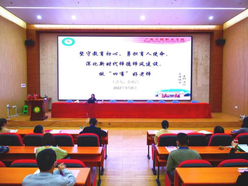 黄秋霞副书记作题为《坚守教育初心,勇担育人使命,深化新时代师德师风建设,做“四有”好老师》的师德师风专题教育,她与新入职教师一起学习了新时代教师的使命与职责,并结合有关师德失范行为的典型案例作了警示教育,要求新入职教师时刻把教师职业道德牢记于心,做到立德树人,德才双优。