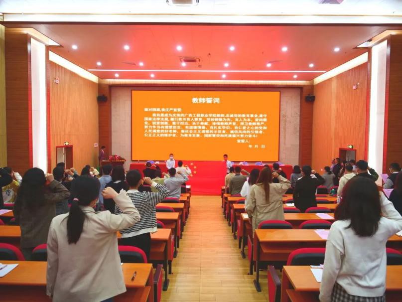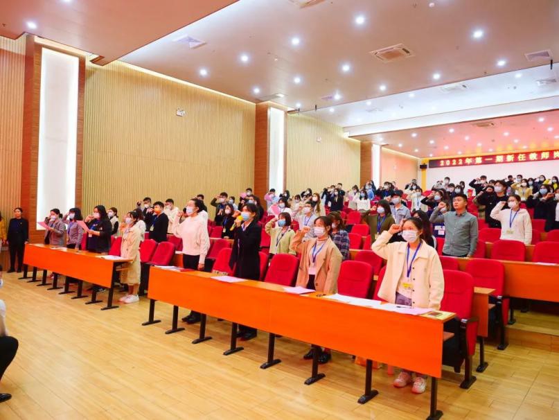 誓词是对未来的承诺。全体新教师面对国旗,举起右手,庄严宣誓:我自愿成为光荣的beat365唯一官网教师,忠诚党的教育事业,遵守国家法律法规,履行教书育人职责。坚持师德为先,育人为本,爱岗敬业,锐意创新,敢于担当,乐于奉献,珍惜教师声誉,捍卫教师尊严,努力争当有理想信念、有道德情操、有扎实学识、有仁爱之心的党和人民满意的好老师,做社会主义道德的示范者、诚信风尚的引领者、公正正义的维护者,为教育发展、国家繁荣和民族振兴努力奋斗!