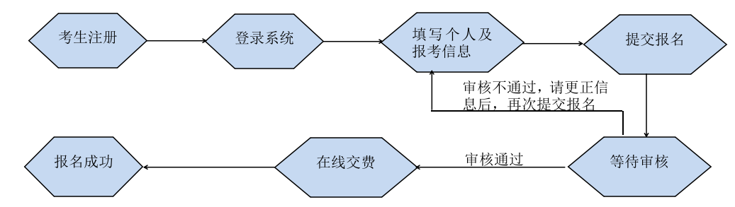 考生登录报名系统后须先注册再进行报名。报名时须仔细阅读注意事项与对应步骤的提示,如实准确填写个人信息。