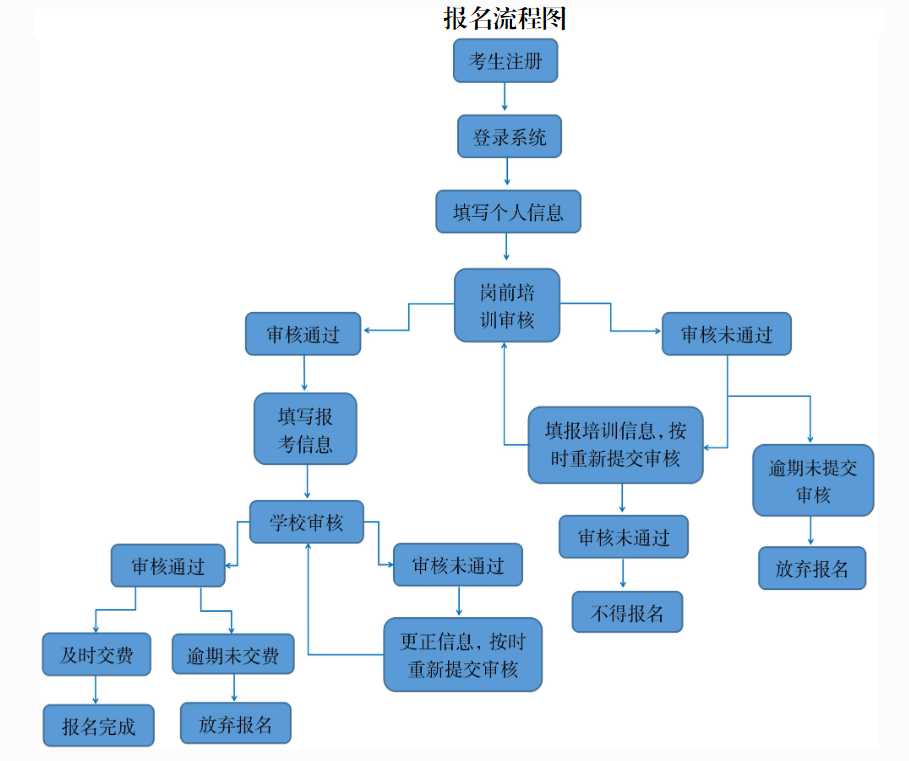 2.报名资格审核结果查询。考生提交报名信息后,一般48小时内反馈审核结果,考生需及时登录报名系统查询。审核通过的考生即可进行网上交费完成报名;审核不通过的考生须于报名资格审核截止时间(3月14日18:00)前更正信息并重新提交报名,直至审核通过进行交费方能完成报名。