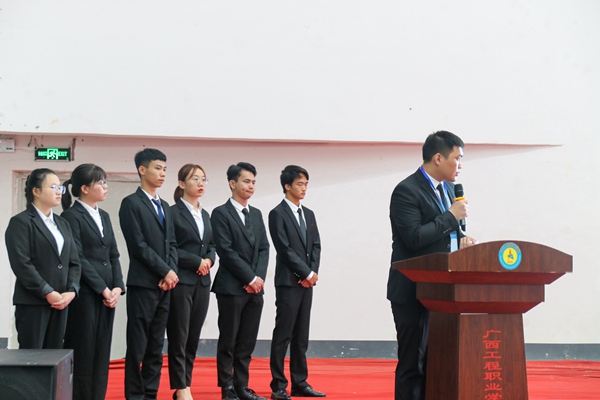 平果市大学园区党工委书记杨敏捷致辞,指出开展“互联网+”大学生创新创业大赛的重要意义,希望各个高校要以大赛为契机,以赛促创、以赛促教,把创新创业教育融入人才培养全过程,持续深化创新创业教育改革与发展,全面提高创新创业人才培养能力,主动服务国家战略和平果市创新驱动发展。