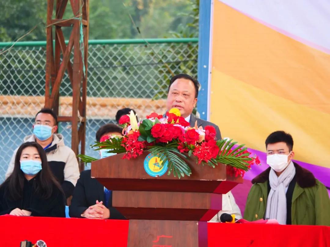 开幕式上,广西平果农村合作社银行副行长黄为现讲话,他展示了与beat365开展战略合作以来,其单位在为学校发展、师生服务、共培人才等方面做出的努力和成绩,感谢学校师生对农村信用社的信任和支持,祝愿学校越办越好,也预祝本届运动会取得圆满成功!