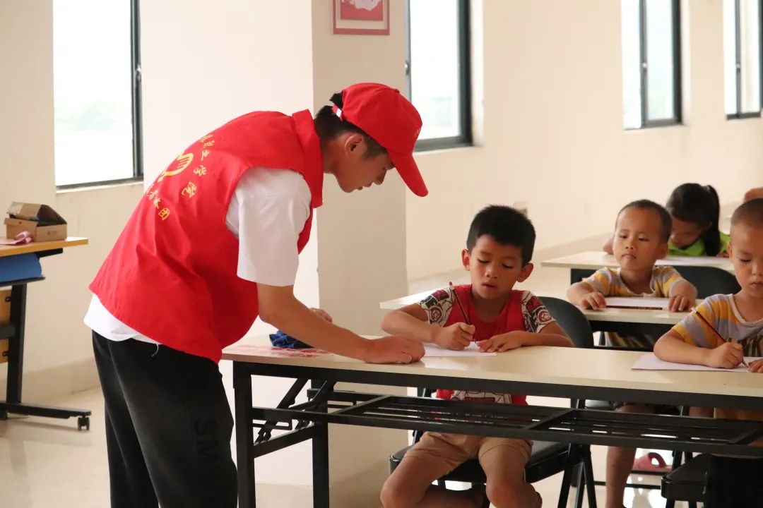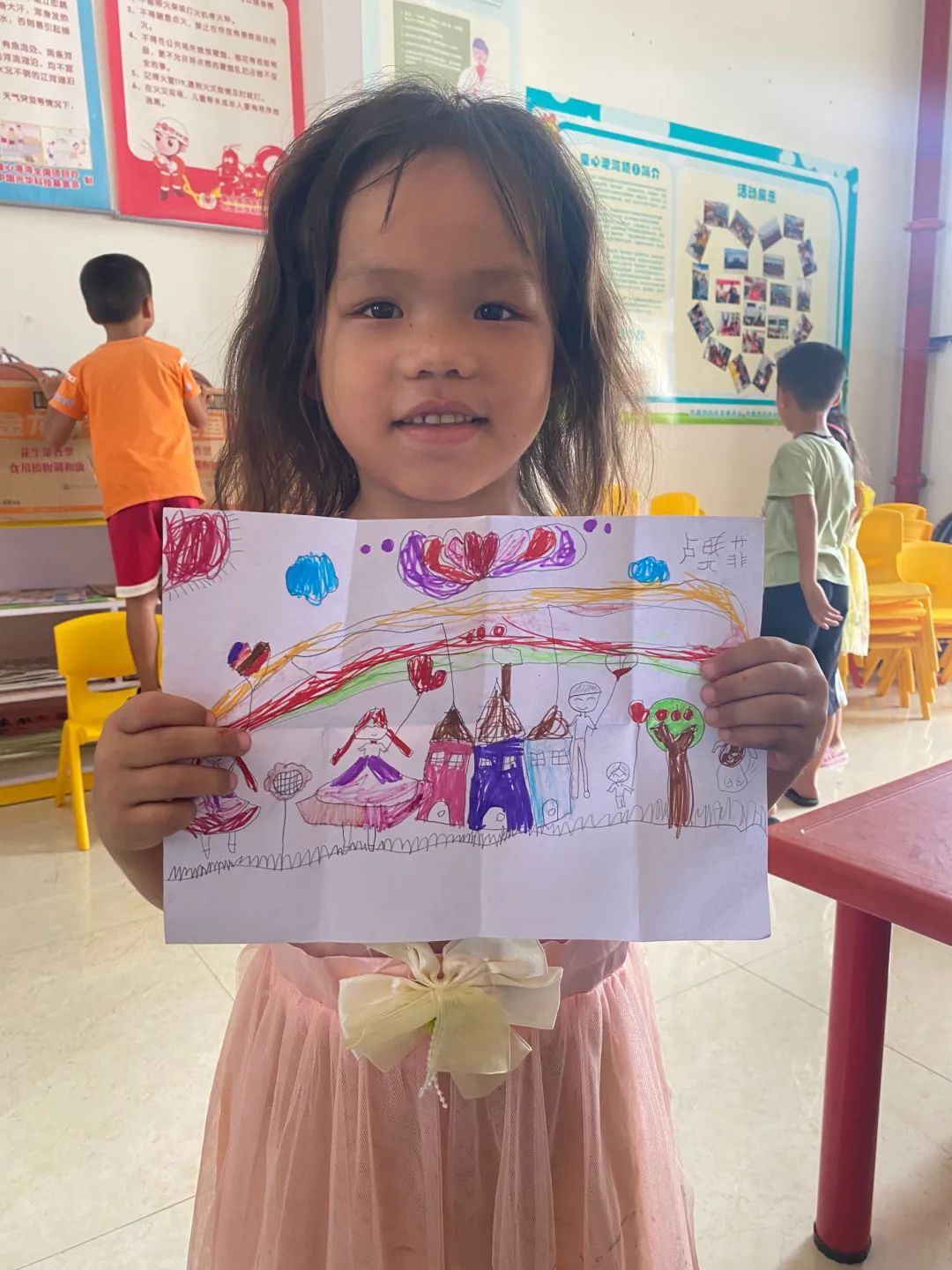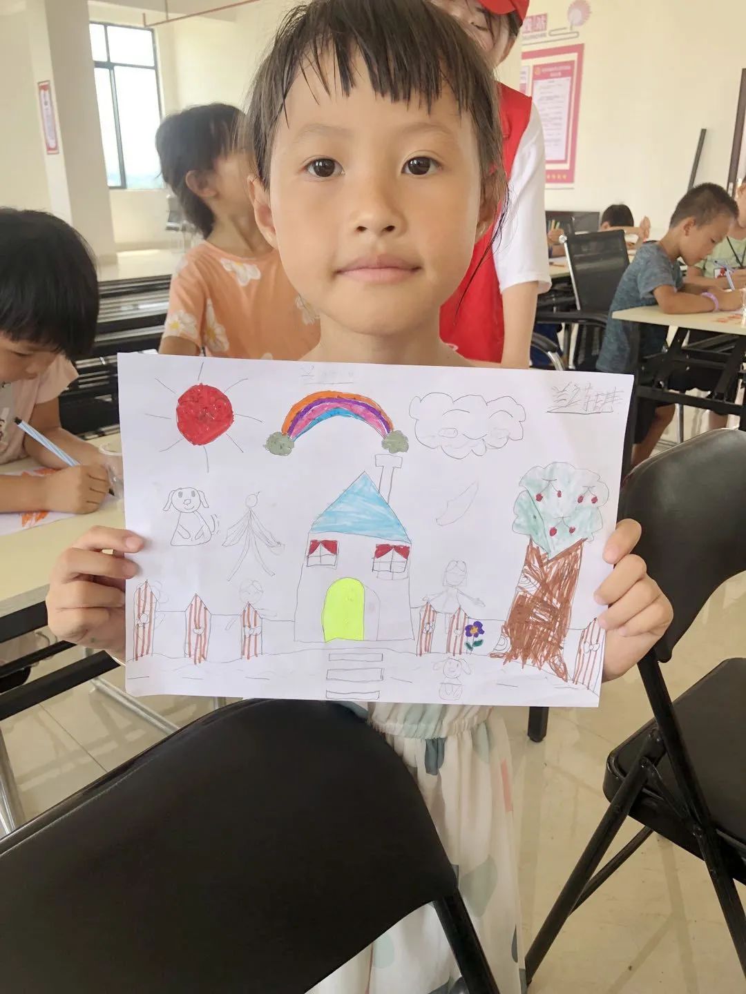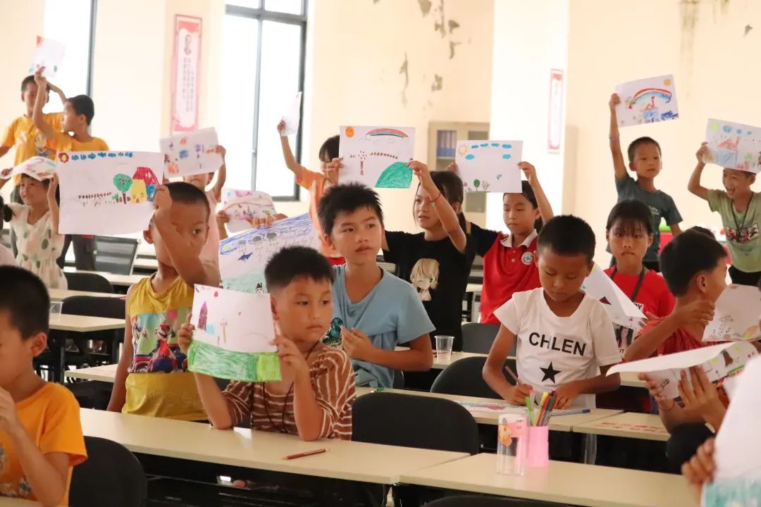 我们的实践团成员们发挥专业优势,以生动有趣又浅显的语言以及边讲边画、随堂指导、点评示范等形式,为孩子们带来了不一样的美术课,激发了孩子们的绘画兴趣,引导孩子们创作出充满童真和无限想象力的绘画作品。