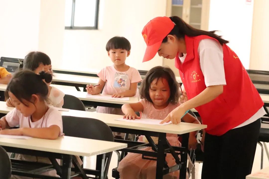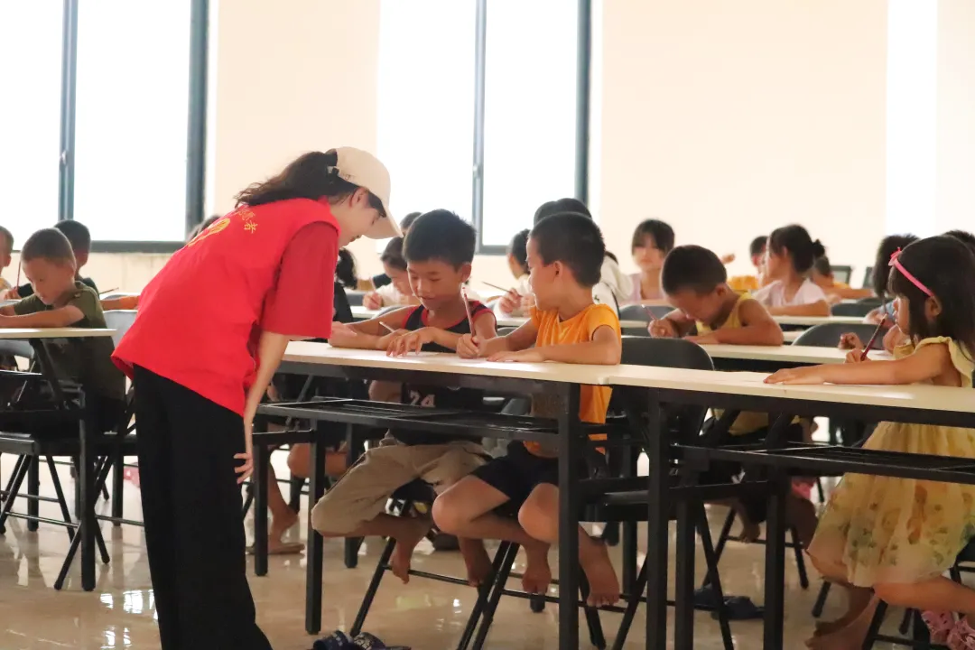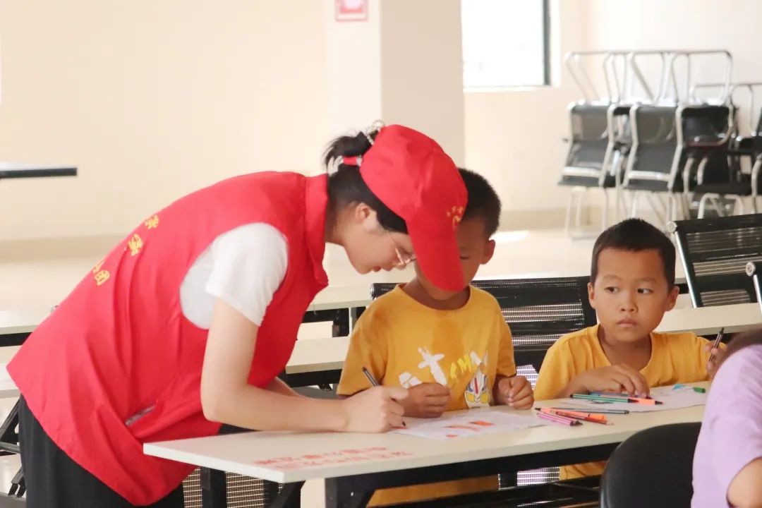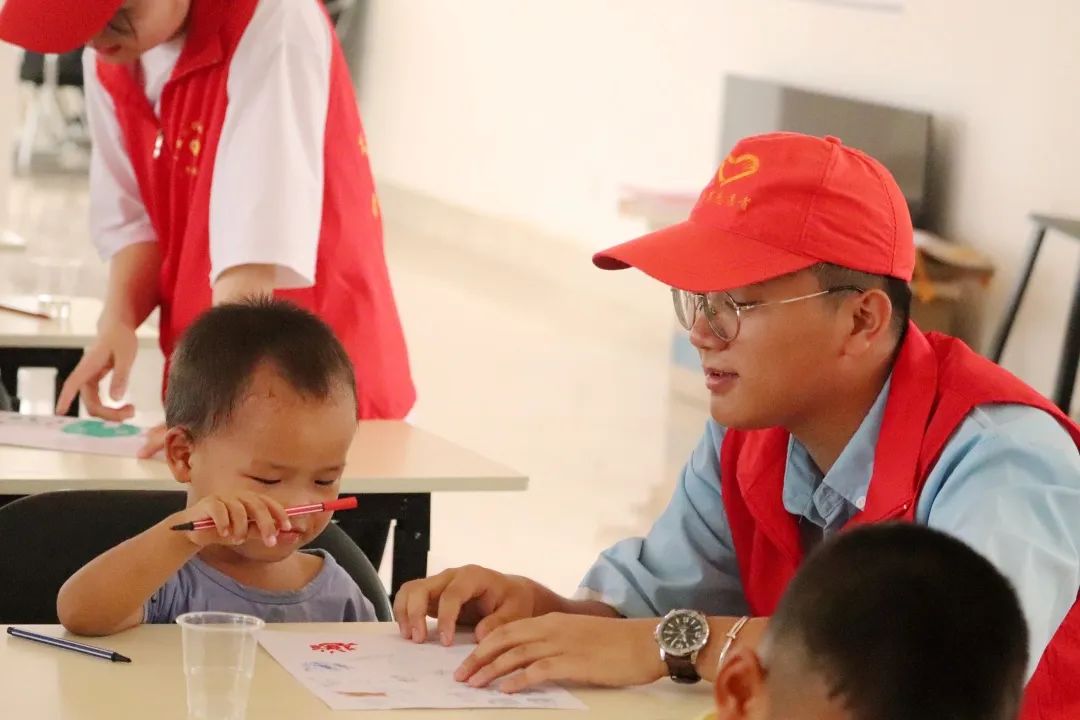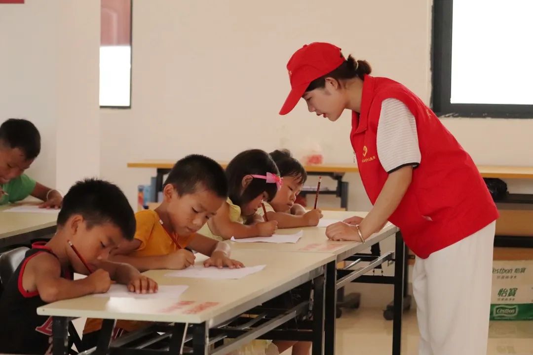 我们的实践团成员们发挥专业优势,以生动有趣又浅显的语言以及边讲边画、随堂指导、点评示范等形式,为孩子们带来了不一样的美术课,激发了孩子们的绘画兴趣,引导孩子们创作出充满童真和无限想象力的绘画作品。
