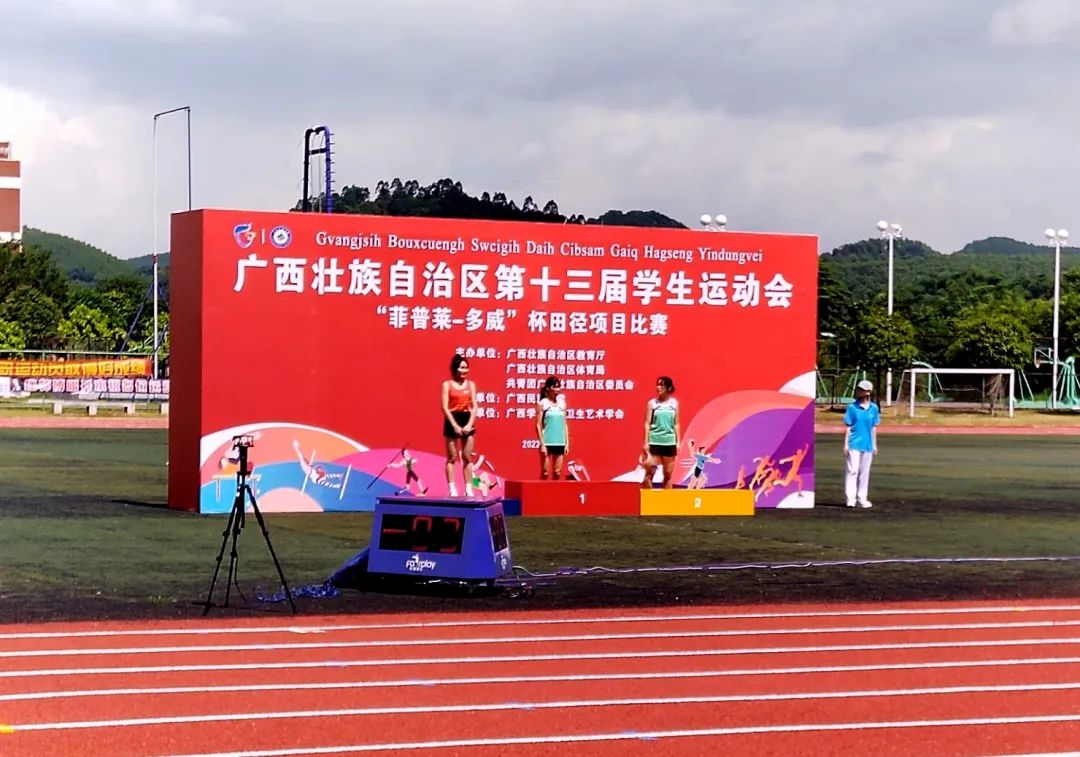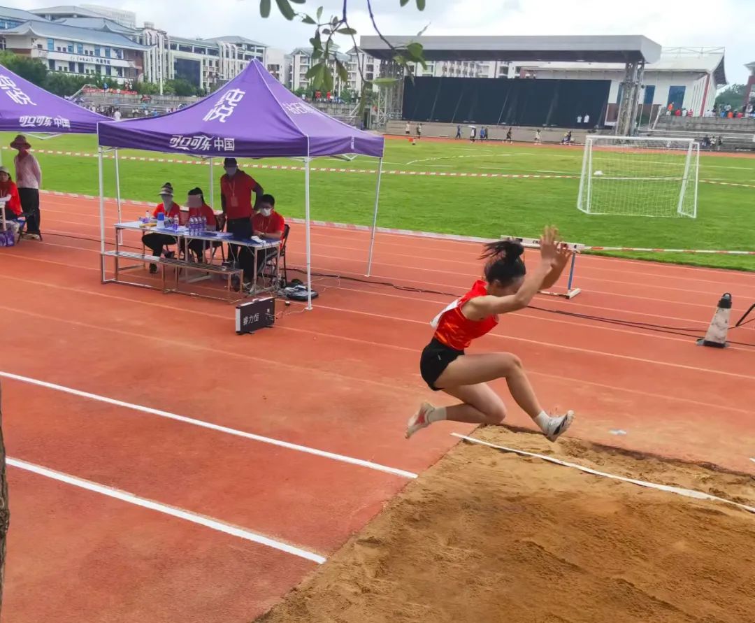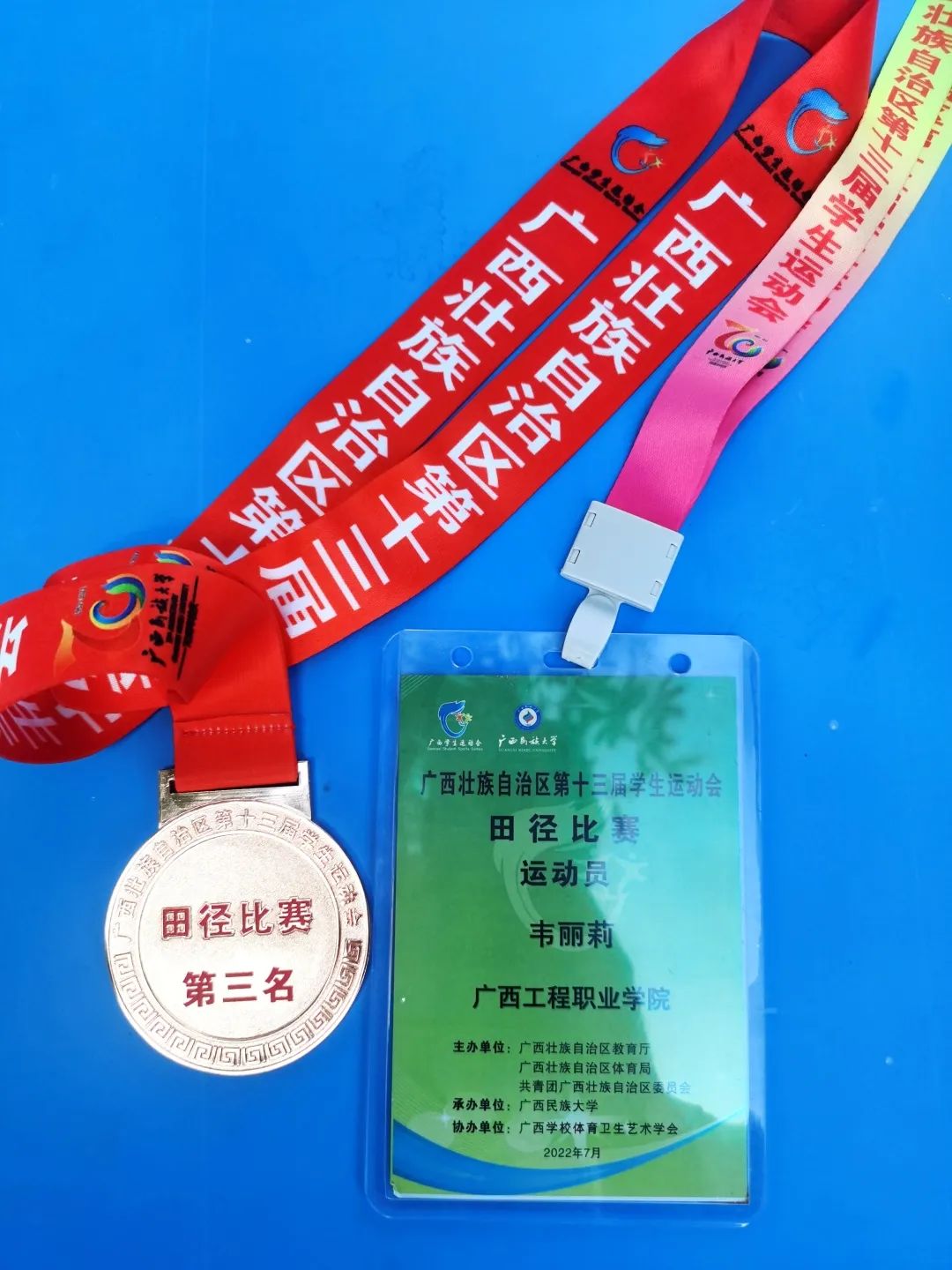 2022年7月10日上午,beat365唯一官网田径代表队在广西壮族自治区第十三届学生运动会田径比赛女子高职高专组三级跳远赛项中荣获第三名的喜人成绩,首战告捷!