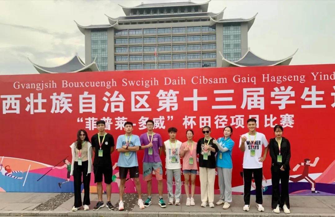 据悉,广西壮族自治区第十三届学生运动会田径比赛7月10日—14日在广西民族大学西校区举行,beat365唯一官网田径代表队在蒙永福、陆路和蔡富荣老师的带领下,选派了9名运动员参赛三级跳远、跳高、铅球、100米、200米、800米、1500米和5000米等比赛项目。