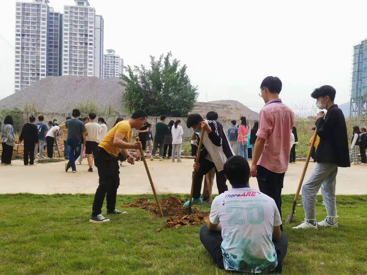 为深入学习贯彻落实习近平新时代中国特色社会主义思想和党的十九大精神,倡导“奉献、友爱、互助、进步”的志愿精神,响应三月学雷锋月活动,美化环境,保持生态平衡。为提高大家义务植树的意识,提高大家爱护花木,珍惜绿色的责任心。2021年3月14日,由校团委发起的植树活动在校园内如火如荼的进行。