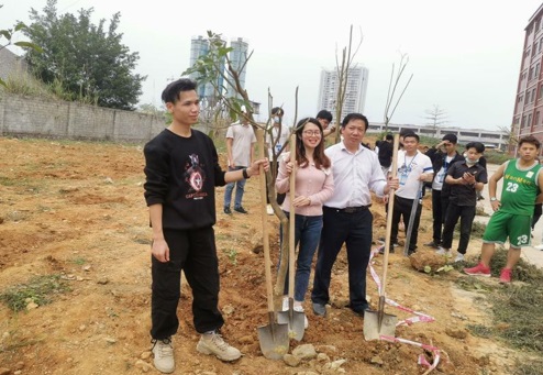 学校党政领导以身作则,细心植下一棵棵小树苗,以实际行动来号召广大师生积极参与植树节活动,参与校园绿化美化活动。